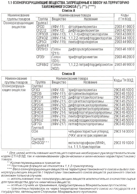 консультация адвоката 1.1. ОЗОНОРАЗРУШАЮЩИЕ ВЕЩЕСТВА, ЗАПРЕЩЕННЫЕ К ВВОЗУ НА ТЕРРИТОРИЮ ТАМОЖЕННОГО СОЮЗА (*), (**), (****) c 1 января 2010 года |