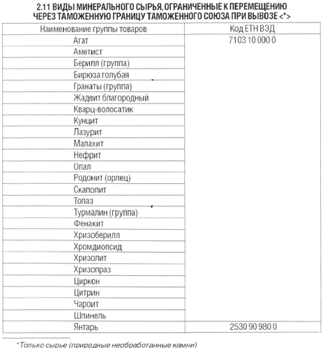 2.11 Виды минерального сырья, ограниченные к перемещению через таможенную границу таможенного союза при вывозе c 1 января 2010 года |