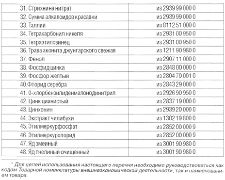 ОбзорыЯдовитые вещества, не являющиеся прекурсорами наркотических средств и психотропных веществ, при ввозе с 1.01.201019.02.2010