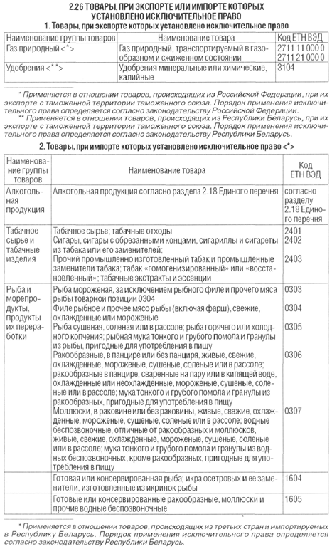 2.26 Товары, при экспорте и (или) импорте которых установлено исключительное право