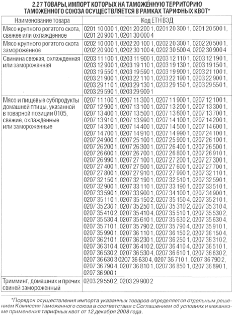 2.27 Товары, импорт которых на таможенную территорию таможенного союза осуществляется в рамках тарифных квот