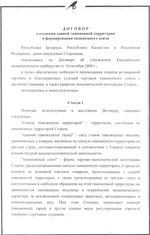 о создании единой таможенной территории
