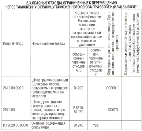 2.3. ОПАСНЫЕ ОТХОДЫ, ОГРАНИЧЕННЫЕ К ПЕРЕМЕЩЕНИЮ ЧЕРЕЗ ТАМОЖЕННУЮ ГРАНИЦУ ТАМОЖЕННОГО СОЮЗА ПРИ ВВОЗЕ И (ИЛИ) ВЫВОЗЕ *