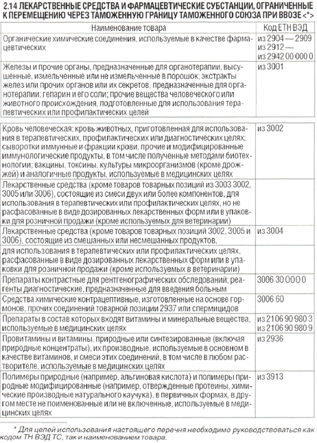 2.14 Лекарственные средства и фармацевтические субстанции, ограниченные к перемещению через таможенную границу таможенного союза при ввозе <*> с 1 января 2010 года |